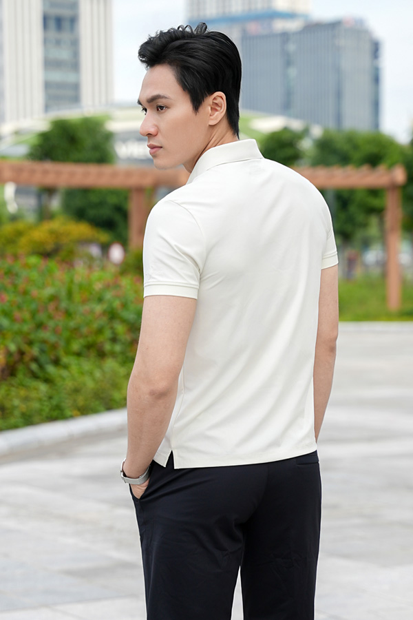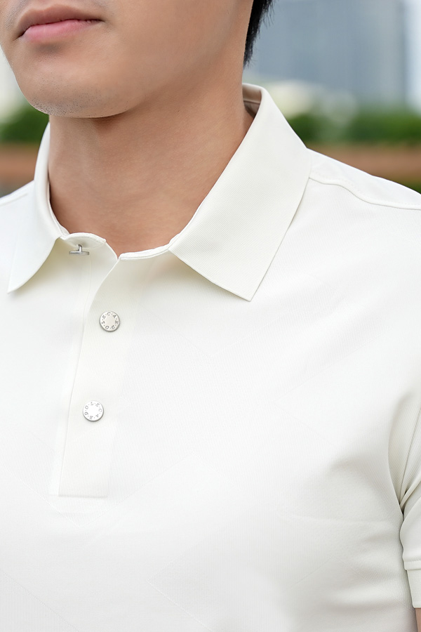– Thiết kế dệt họa tiết Jacquard họa tiết chéo khỏe khoắn và tinh tế. Ứng dụng công nghệ xu hướng hiện đại Seamless- không đường may cho phần cổ và nẹp áo mang đến vẻ ngoài mới lạ cho người mặc. Tay thêu Lecardo khẳng định thương hiệu riêng