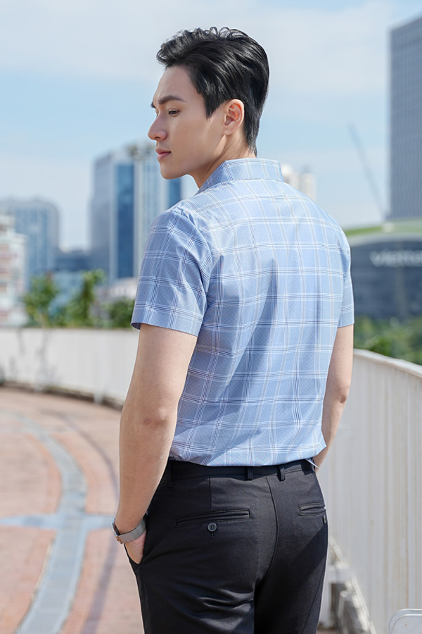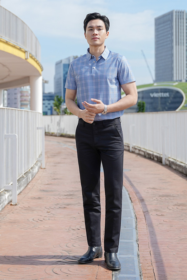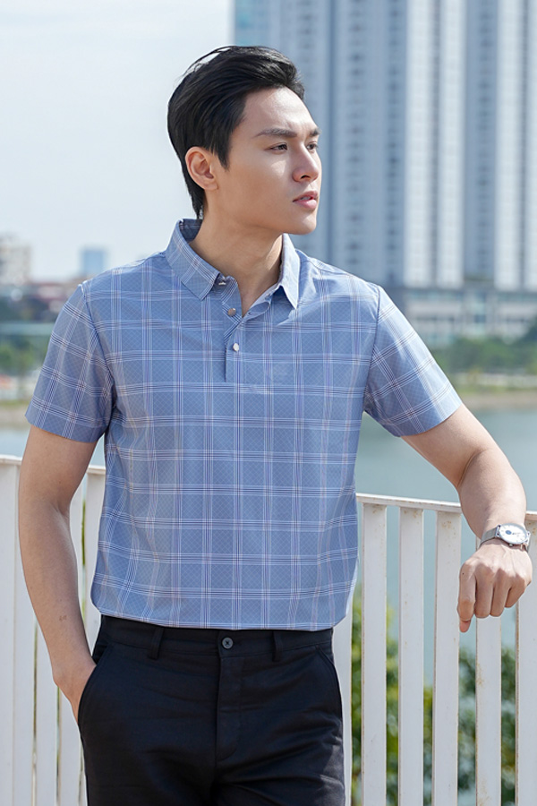 – Thiết kế vô cùng đặc biệt, là sự kết hợp giữa Polo và sơ mi. Lịch sự, sang trọng mà vẫn trẻ trung. Họa tiết in caro mới lạ, ứng dụng công nghệ seamless không đường may