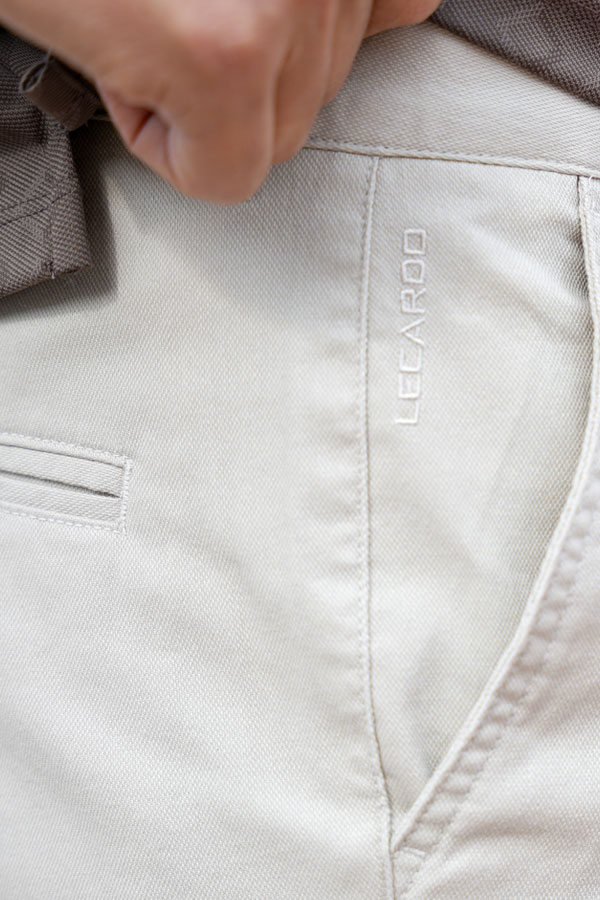 - Thiết kế túi chéo 2 bên sườn, túi sau có cúc cài tiện dụng. Thêu chữ Lecardo khẳng định thương hiệu uy tín